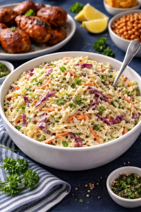 Classic Coleslaw — Creamy, Tangy, and the Cold Crunch Every BBQ Plate Needs