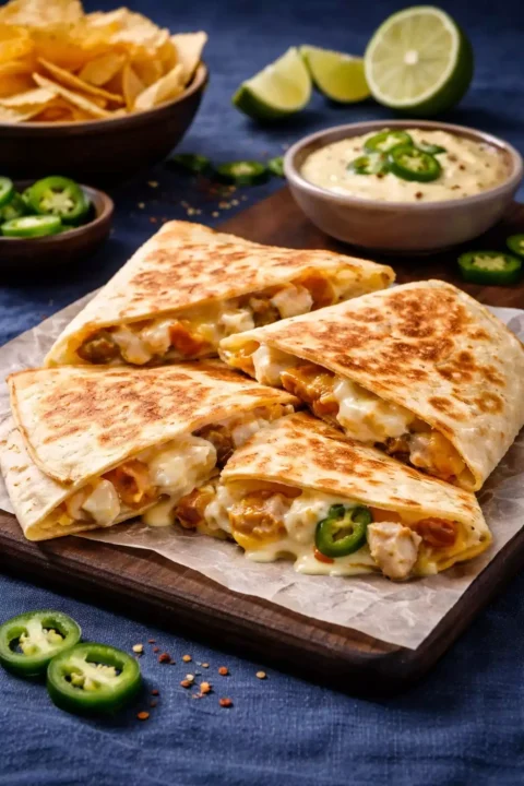 For parties, make the jalapeño sauce in a big batch (quadruple the recipe) and set up a quesadilla bar. Offer chicken, steak, beans, and multiple cheese options. Grill quesadillas on demand — each one takes about 5 minutes. Cut into triangles and pile on a platter. This is one of the easiest party foods to execute because the prep is minimal and you can cook while socializing.