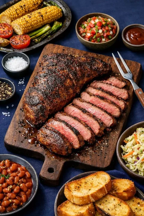Grilled corn, coleslaw, potato salad, or a simple green salad. Tri-tip also makes incredible sandwiches — slice thin, pile on a French roll with horseradish cream and arugula.